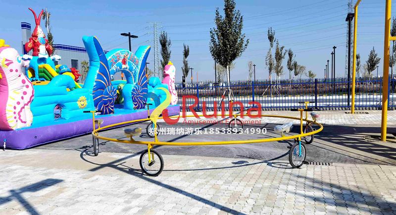 最近戶外拓展游樂(lè)設(shè)備十分的受大家的歡迎,因此現(xiàn)在的游樂(lè)設(shè)備生產(chǎn)廠家都瞄準(zhǔn)這個(gè)勁頭,開(kāi)始推出擁有自家特色的戶外拓展游樂(lè)項(xiàng)目。鄭州瑞納游樂(lè)設(shè)備廠也是這樣,開(kāi)發(fā)了屬于自己特色的戶外拓展游樂(lè)項(xiàng)目,迷你旋轉(zhuǎn)單車(chē)就是其中一個(gè)。