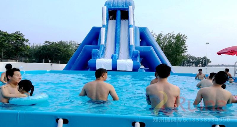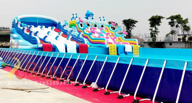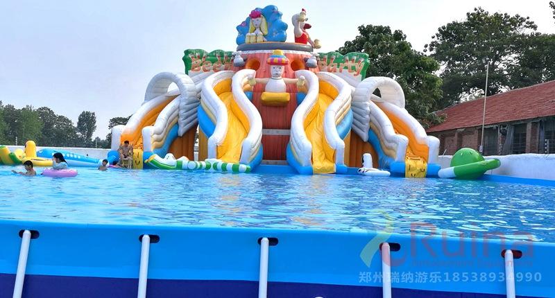 3、支架游泳池的游玩方式多樣,支架水池即可以和一些動(dòng)物卡通人物造型的水上滑梯組合使用,還可以將不同規(guī)格的支架泳池通過各種充氣模型玩具組合,組成一個(gè)集娛樂性、競賽性的水上沖關(guān)闖關(guān)設(shè)備,可以調(diào)整支架游泳池位置來改變水上沖關(guān)關(guān)卡設(shè)置,豐富水上沖關(guān)的趣味性和耐玩性。